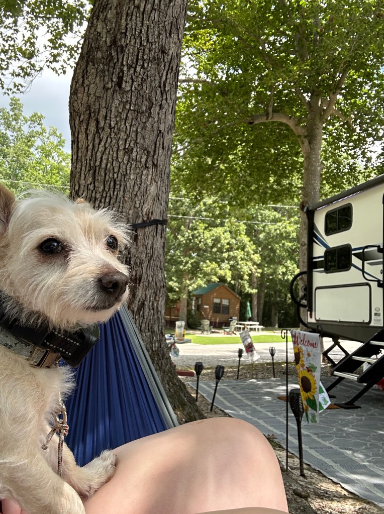 They also love getting their time outside to explore whatever new area we are in! When I can, I set up the hammock and let Marley relax with me when the weather is nice. He loves it!